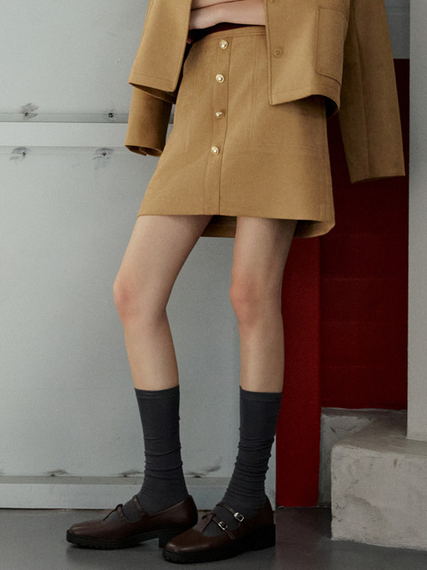 [플라스틱아일랜드] 금속단추 스웨이드 스커트 PR3WS963