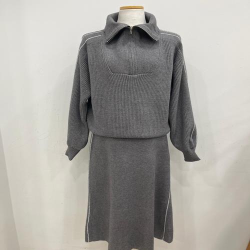[플라스틱아일랜드]PR4KL531 (SET)뒷트임니트스커트+반집업 카라니트