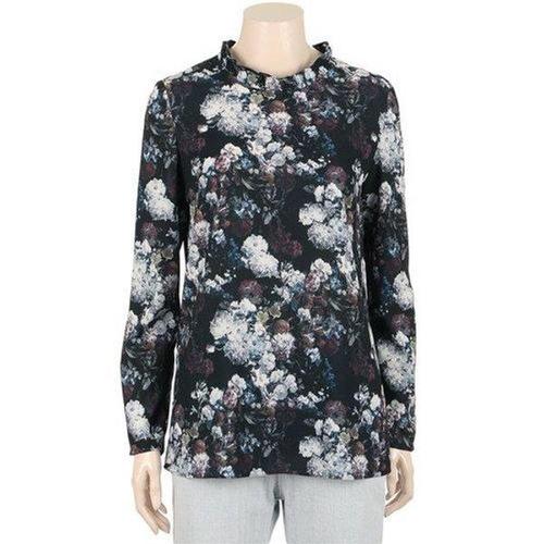 여자 여리핏 플라워 패턴 프릴 블라우스