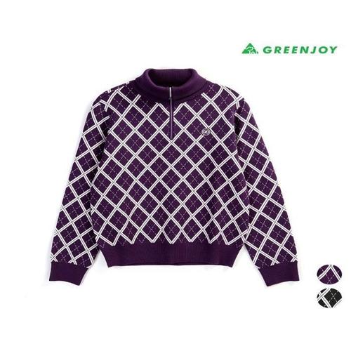 그린조이 세이브존07 여성 사선 패턴 아가일 쉐타 하프 집업 티셔츠 GF23S
