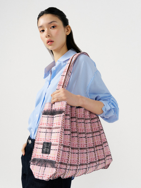 [플리츠마마] 트위드 쇼퍼백 페일핑크