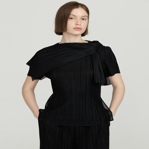 [D-PLEATS] 블랙 탈착 숄 세트 반팔 플리츠 티셔츠 (DLTS5BP31BK)