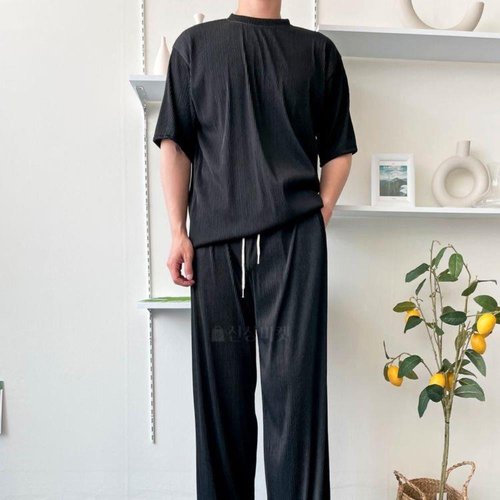 [가비진] 남성용 플리츠 반팔 상의+일자핏 밴딩 팬츠 상하의 세트