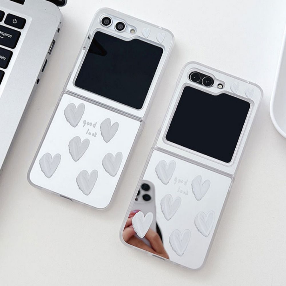 하트 미러 Z플립 케이스 7 6 5 4 3 하드 귀여운 화이트 레터링 거울 심플 디자인