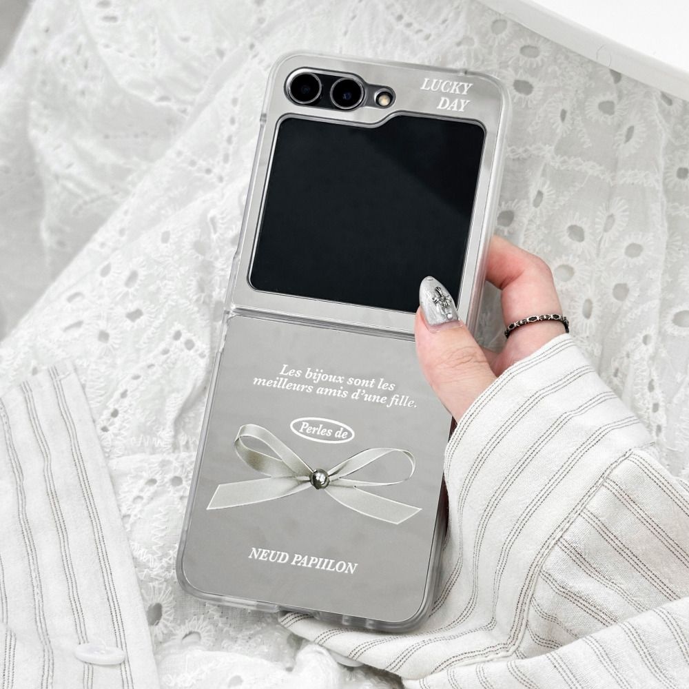 화이트 리본 미러 Z플립 케이스 7 6 5 4 3 하드 귀여운 레터링 거울 디자인
