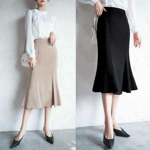 [에이치플러스몰]피쉬테일 새틴 슬림 원 스커트