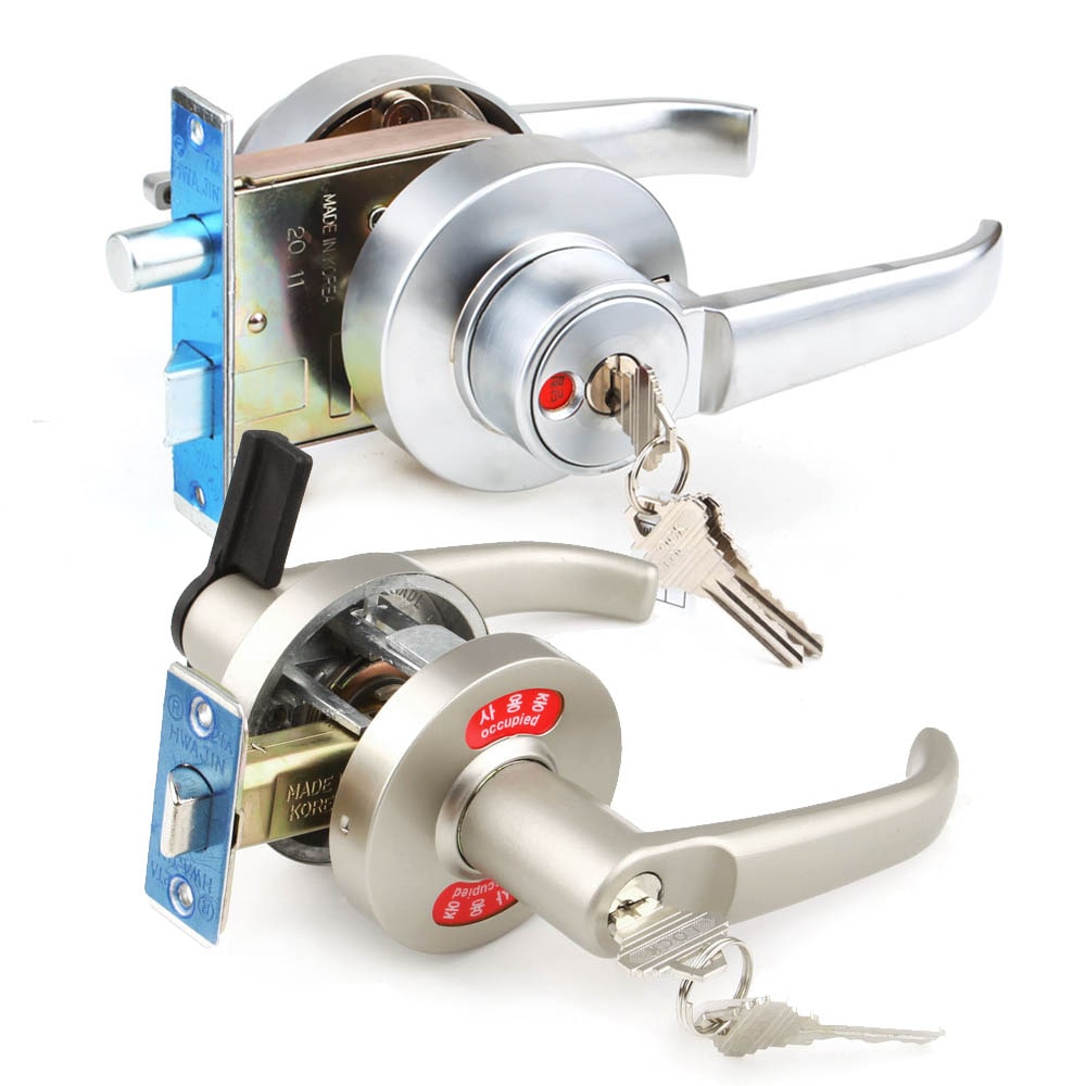 파츠 도어락 사틴스퀘어 실버 방문손잡이 레버 핀버튼형 문고리