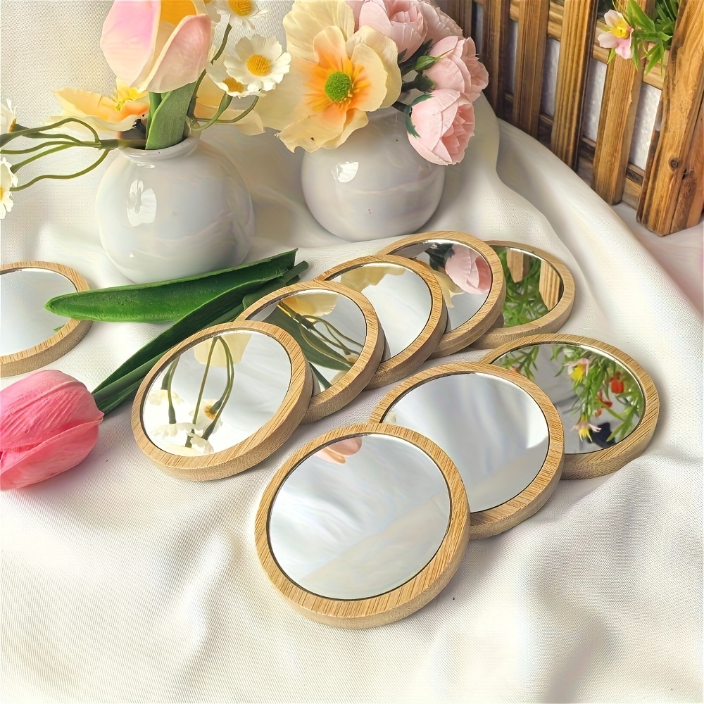 TEMU 10개 세트 우아한 휴대용 나무 메이크업 거울 - 유리 표면, 소형 및 가벼움, 홈, 살롱, 선물용, 자연스러운 미학, 지속 가능한 제품, 뷰티 애호가를 위한 필수품, 배터리 불필요 여행용 거울
