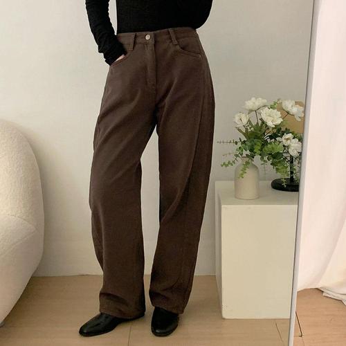 엘쏘 여성용 골덴 따뜻 피치 겉 기모 롱버전 와이드 밴딩팬츠
