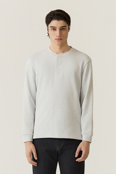 갤러리아_25년 가을 변형 피케 조직 헨리넥 티셔츠 L/그레이 ( AM0FTTH351-32