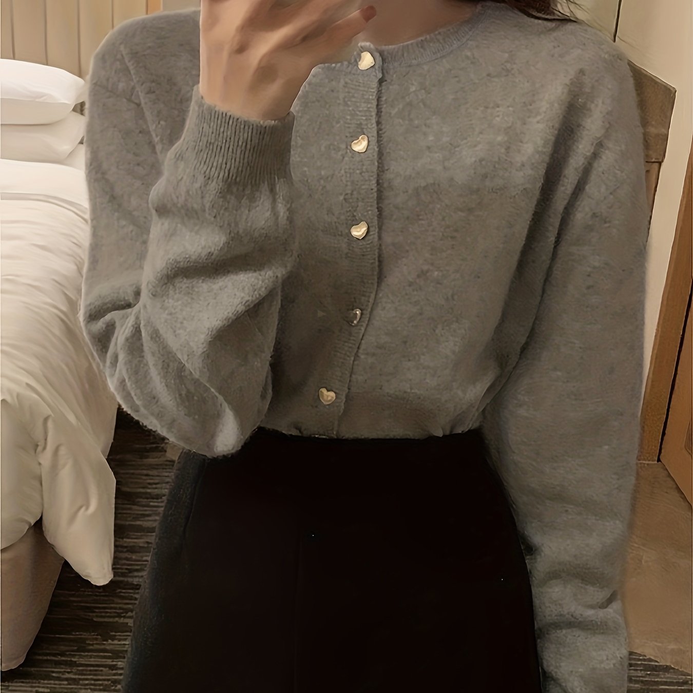 TEMU 부드러운 스타일의 숏 가디건, 너구리 소재로 제작되어 고급스러운 느낌을 제공하며, 작은 키의 여성에게 완벽합니다.