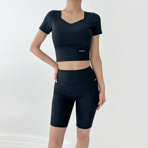 [샵앤][샵앤] 여성 꼬임 뒷트임 요가 필라테스 스판 반팔티 WLD-WSH-SIS806