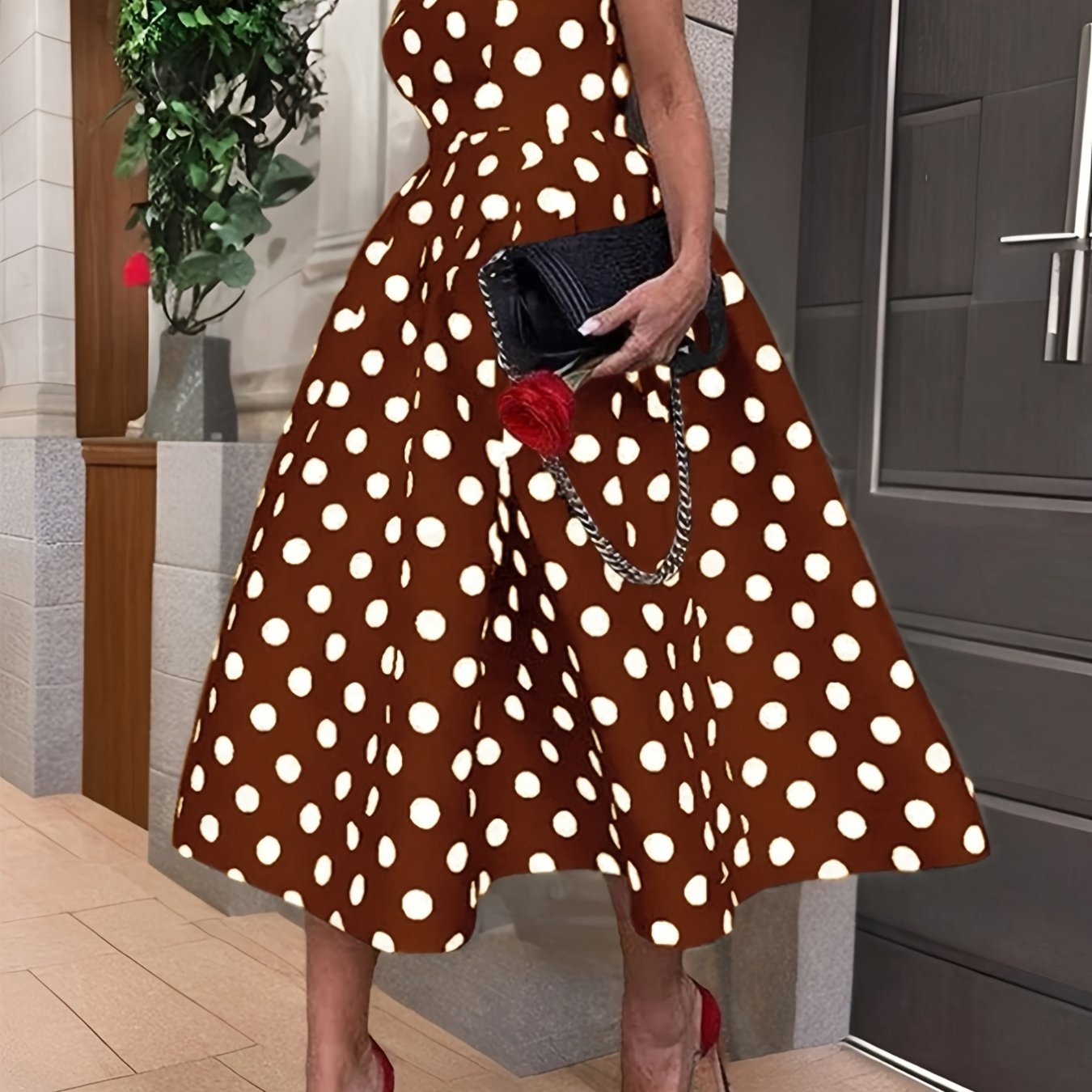 TEMU YY507 도트 프린트 벨티드 선드레스, 빈티지 민소매 데이트 파티 및 일상 패션 다용도 여성 의류