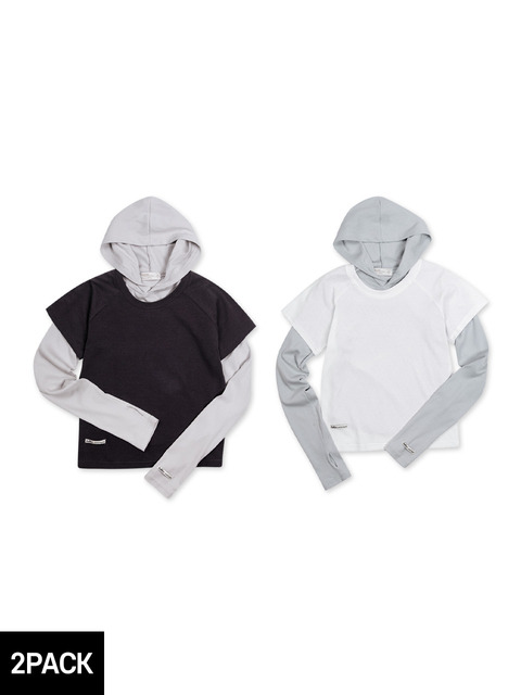 [바켄] [2PACK] 바켄 무지 핑거홀 슬림핏 후드티 소프트 래글런 반팔 티셔츠 2종 패키지