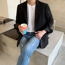 베이직 세미 오버 빅사이즈 싱글 블레이저 / 하객 남친 룩 봄 가을 기본 세미케주얼 정장 자켓