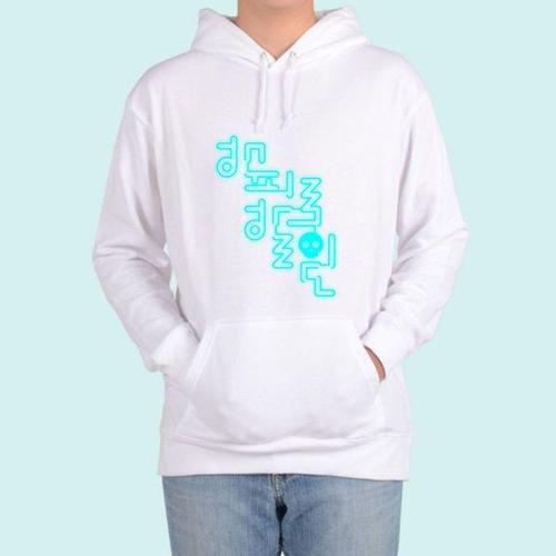 [에이치플러스몰]디자인 후드티 하늘색 네온 행사 할로윈 단체복 맨투