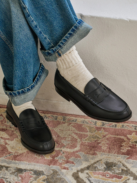 [하루타] 3048-BLACK 여성 소가죽 와이드 페니 로퍼