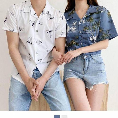 [셀러허브_여성트랜드패션]하와이안 꽃무늬 반팔셔츠 남방 패턴 남성용 여름 스타일