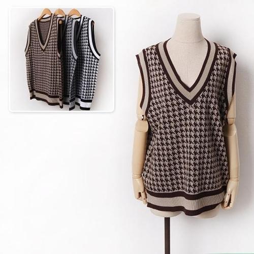 [엄지척]여성 봄 가을 겨울 하운드체크 브이 니트조끼 베스트_20362390_667501