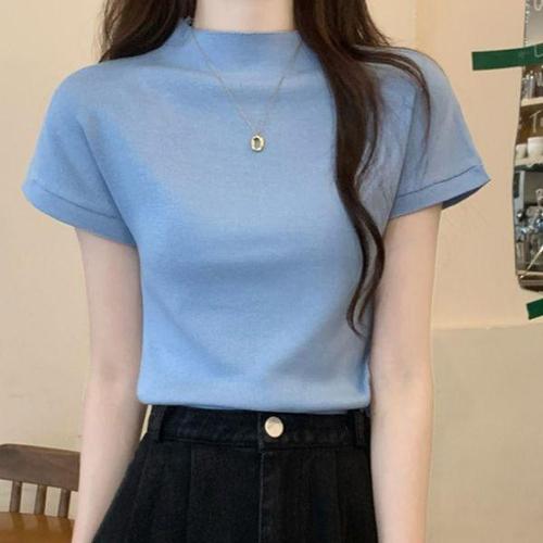 [에이치플러스몰]여성 베이직 반하이넥 반팔니트 데일리 슬림 이너티