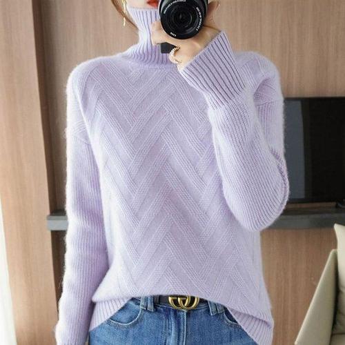 [에이치플러스몰]폴라넥 패턴 니트 데일리룩 하이넥 도톰 겨울 베이직