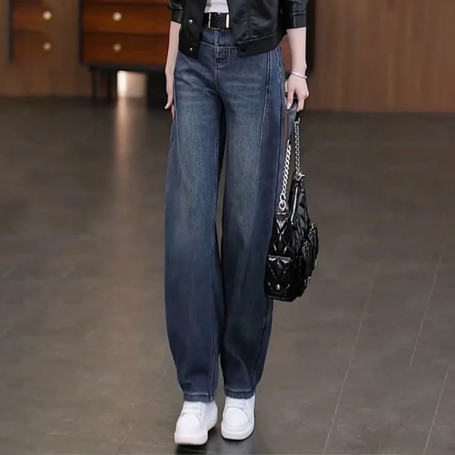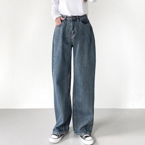 SAHINER 여성용 빈티지 가을 하이웨이스트 와이드핏 일자 데님 팬츠 LWANZ63