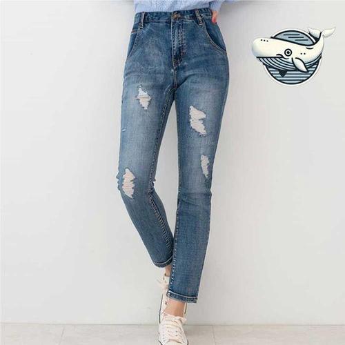 [에이치플러스몰]하이웨스트 스판 청바지 멋스러운 헤짐 포인트