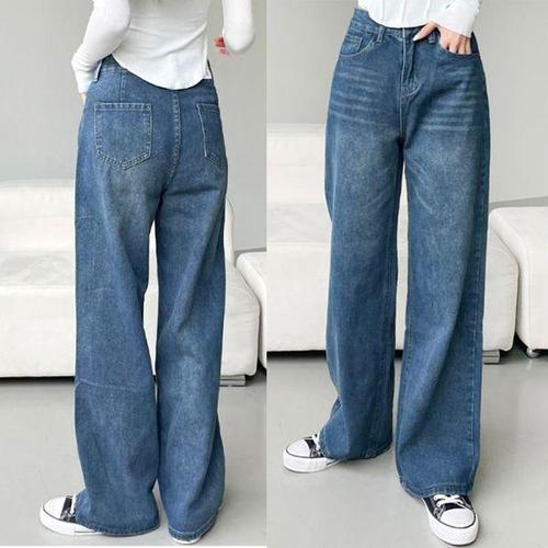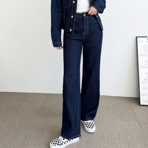 1+1 하이웨스트 빈티지 블루커브 데님 팬츠 여성 스트레이트 와이드진
