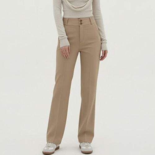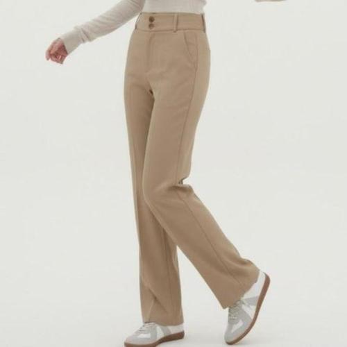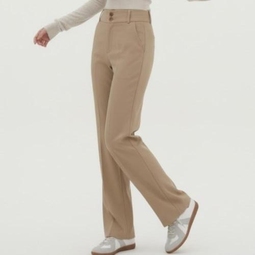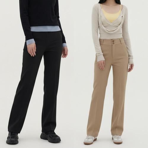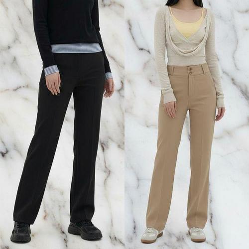 [옷자락] 여자 투버튼 하이웨이스트 와이드핏 스판혼방 신축성 데일리 슬랙스