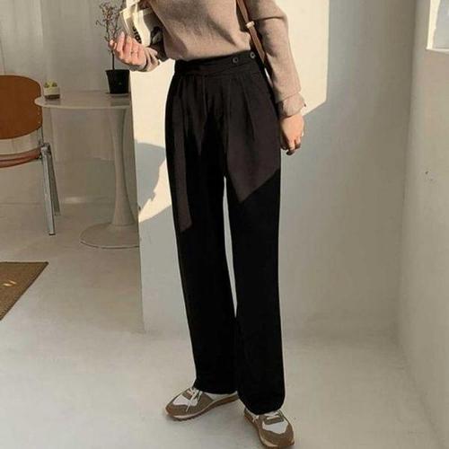 [에이치플러스몰]여성 하이웨스트 뒷밴딩 와이드슬랙스 캐주얼 롱 팬츠