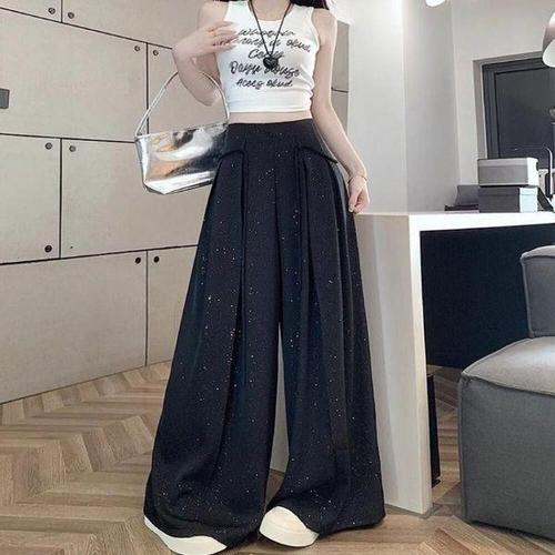 1+1 하이웨이스트 드레이프 캐주얼 정장 바지, 여성용 봄과 가을 헐렁한 주름 방지 스트레이트 와이드 팬츠