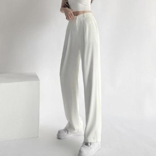 [신상오픈런]여성 하이웨이스트 스판 혼합 와이드핏 슬랙스 데일리 팬츠