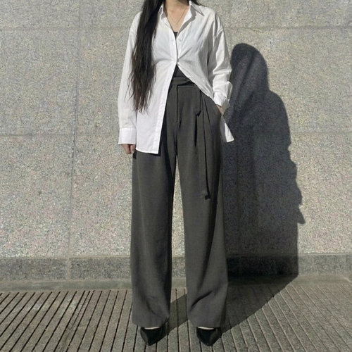 [엄지척]여성 하이웨스트 핀턱슬랙스 허리끈 디테일 모던 바지_20135974_667501