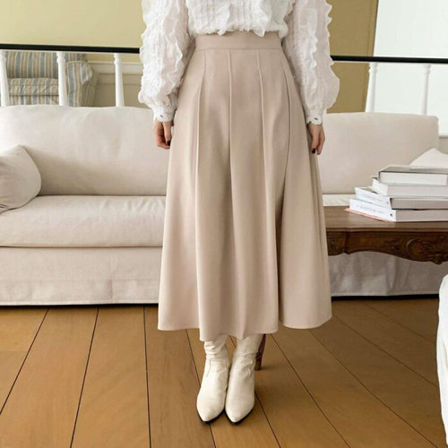 슈팅스타 / 클래식 무드 하이웨스트 플리츠 롱 스커트