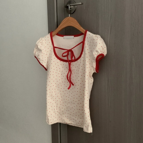 입꼬 / 하이틴 선데이 하트 리본 배색 반팔티셔츠2color