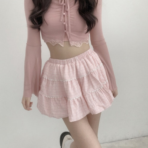 입꼬 / 하이틴 레이스 잔체크 펌킨 미니스커트4color
