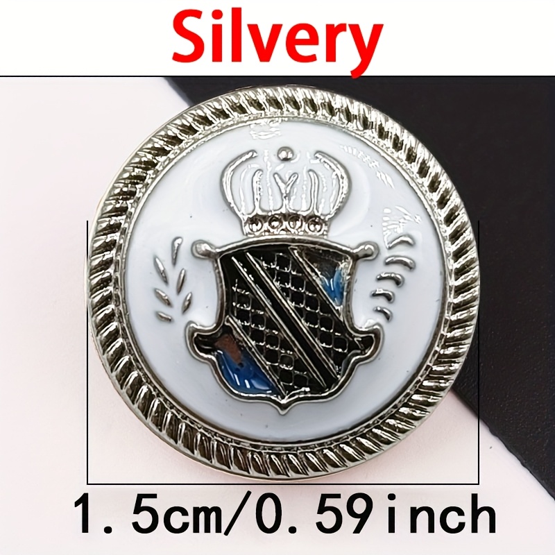 TEMU 10개 우아한 남성용 메탈 실드 크라운 버튼, 은빛 패셔너블 영국 스타일 오일 드롭 핸드 소잉 버클, 셔츠, 재킷, 및 정장에 적합 - 골든, 칼리지 스타일, 수제 홈 소잉 용품