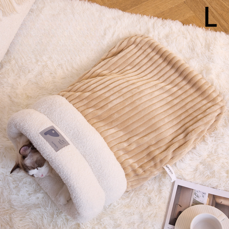 TEMU 포근한 겨울용 고양이 침대 - 돔 상단과 부드러운 베이지 파일이 있는 터널형 펫 하우스, 실내 고양이를 위한 자체 은신처, 조립 불필요, 새끼 고양이와 소형 애완동물을 위한 편안한 은신처