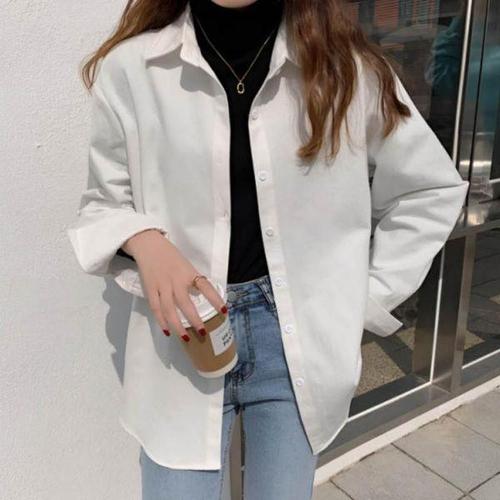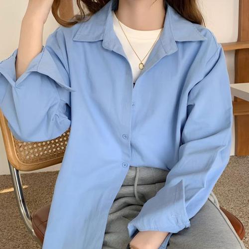 TEMU 여성 빈티지 오버사이즈 긴팔 셔츠 - 캐주얼 루즈핏 버튼업 블라우스, 가슴 포켓, 단색, 긴소매, 레귤러 길이|블라우스|여성블라우스