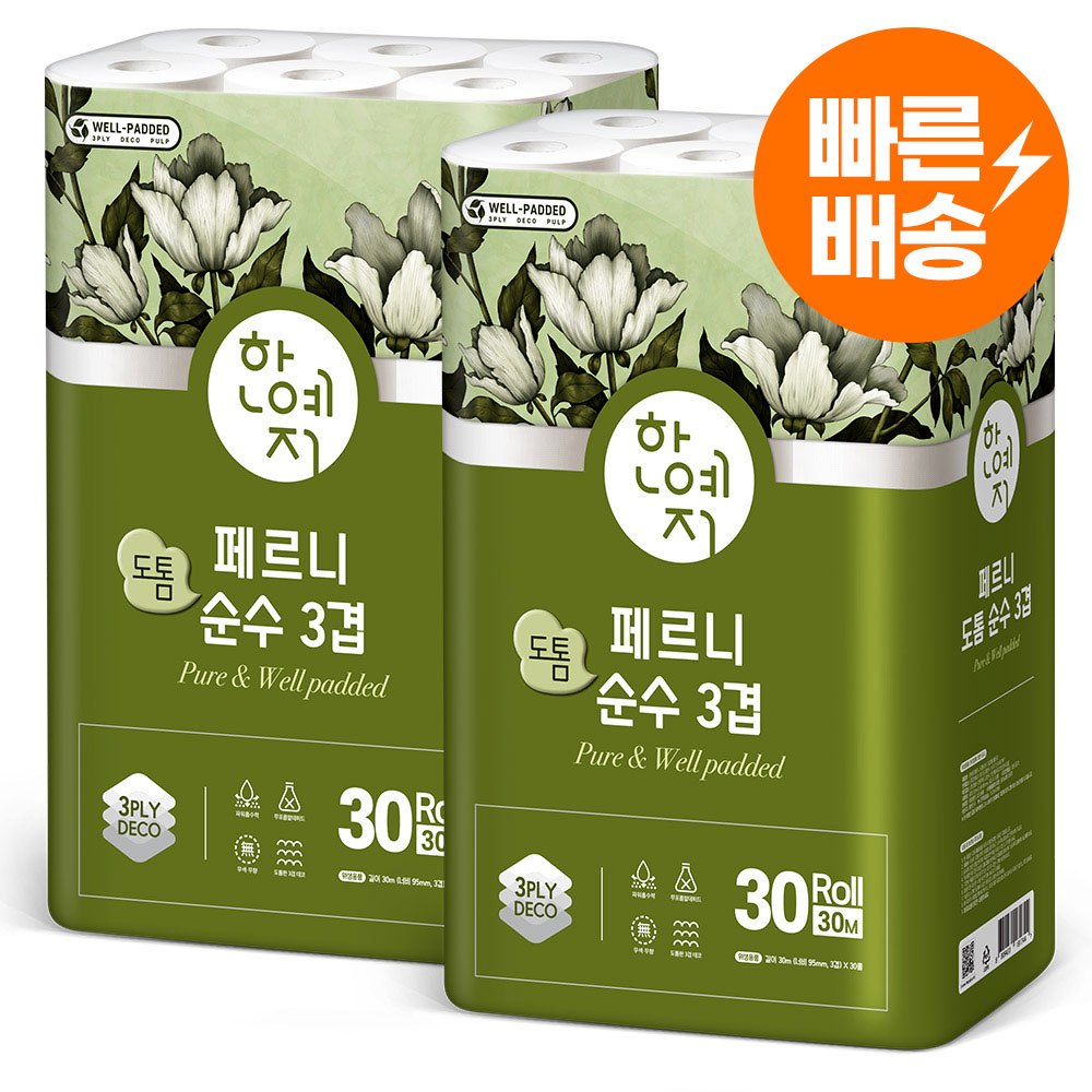 한예지 페르니 도톰 순수3겹 화장지 30m 30롤 2팩