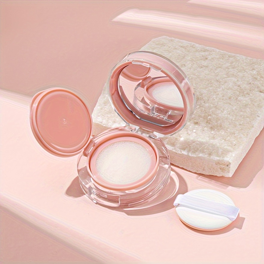 TEMU 1개, 핑크 소형 미니 홀 메이크업 케이스, 내장 거울이 있는 리필 가능 파운데이션/BB 크림 샘플 용기 - 휴대용 플립 커버 디자인 및 스펀지 포함, 편리한 보관 메이크업 백, 여행 필수품|케이스