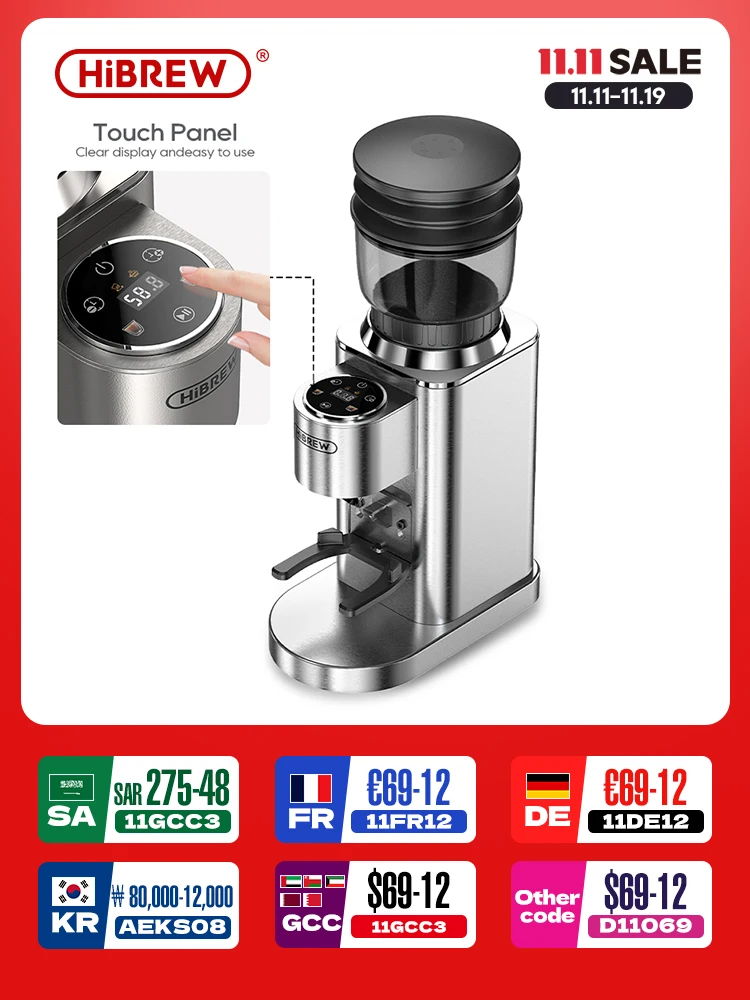 에스프레소 아메리칸 커피를 위한 48개의 기어가 장착된 HiBREW 자동 버 밀 전기 커피 그라인더, 비주얼 원두 저장 G7 위에 붓기