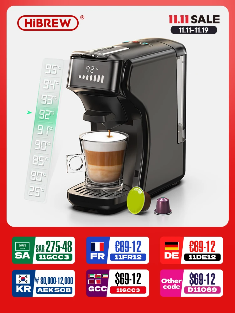 HiBREW 6in1 캡슐 커피 머신 핫/콜드 멀티 에스프레소 카페테라 카푸치노 커피 메이커 Dolce Gusto Nespresso Powder H1B