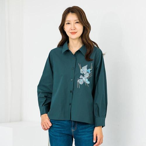 엄마옷 카라 오픈 면 긴팔 셔츠 NB509086 중년여성의류/60대/70대/마담/빅사이즈/할머니옷