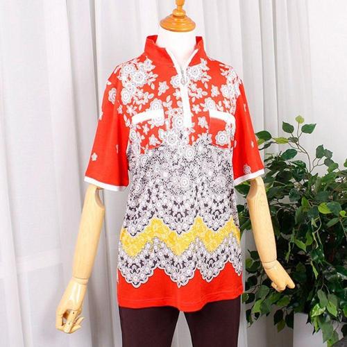 [옷자락] 여성 할머니 여름 꽃무늬 반팔 나염 티셔츠
