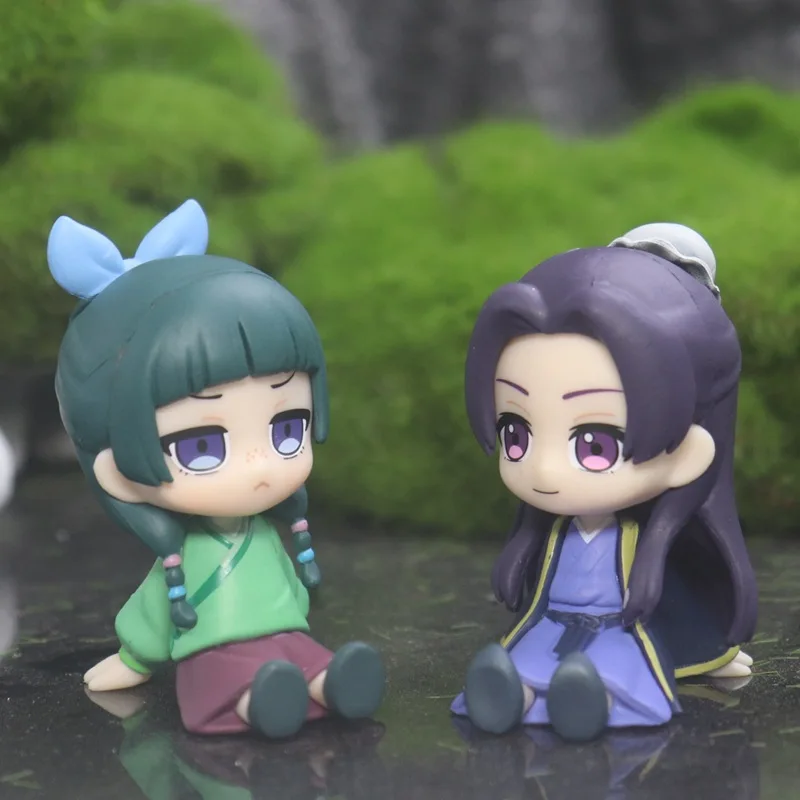 2개/세트 Q 버전 약사의 일기 마오마오 진시 미니 피규어 애니메이션 귀여운 앉아있는 장난감 데스크탑 자동차 장식품 모델 선물