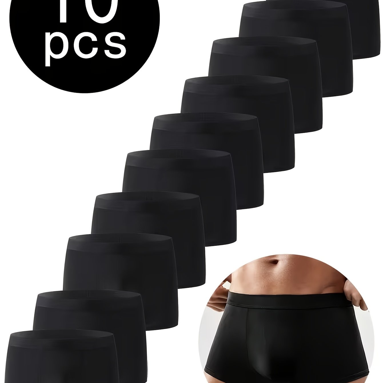 TEMU 10개입 남성용 폴리에스터 섬유 브리프 블랙 - 스포츠 및 캐주얼에 적합, 부드러운 피부 친화적 땀 흡수 통기성 남성용 반바지, 사계절 착용, 땀 방지