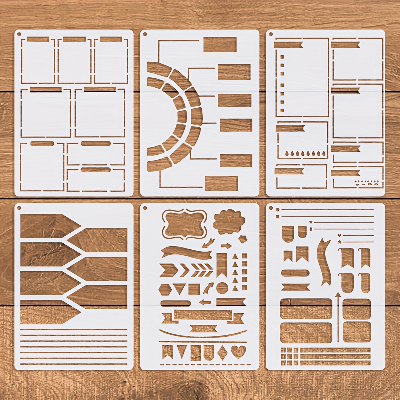 TEMU 6pcs 5×7 인치 저널 스텐실 세트 - 발렛 저널, DIY 플래너, 손글씨 폰트 및 창의적 글쓰기 프로젝트에 적합, 방수 및 굽힐 가능한 점 저널 템플릿