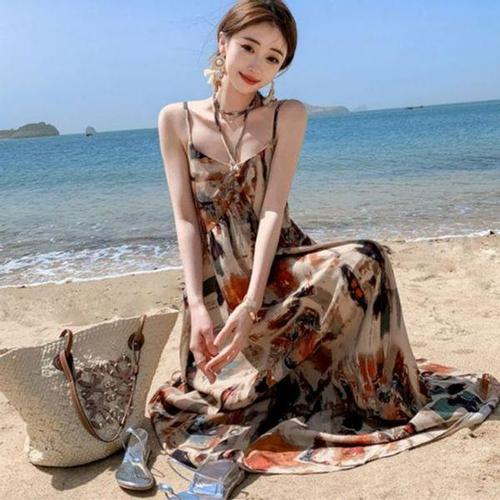 [에이치플러스몰]여성용 인기 땡처리특가 긴 쉬폰 감성 원피스 해변 휴