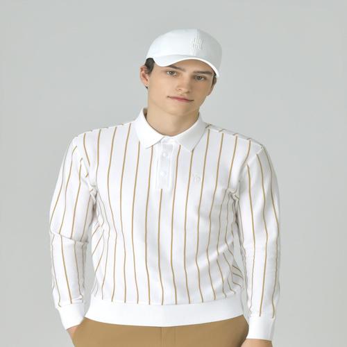 헤지스 골프 화이트 남성 핀스트라이프 긴팔 카라 니트 (HUSW5C615OW)